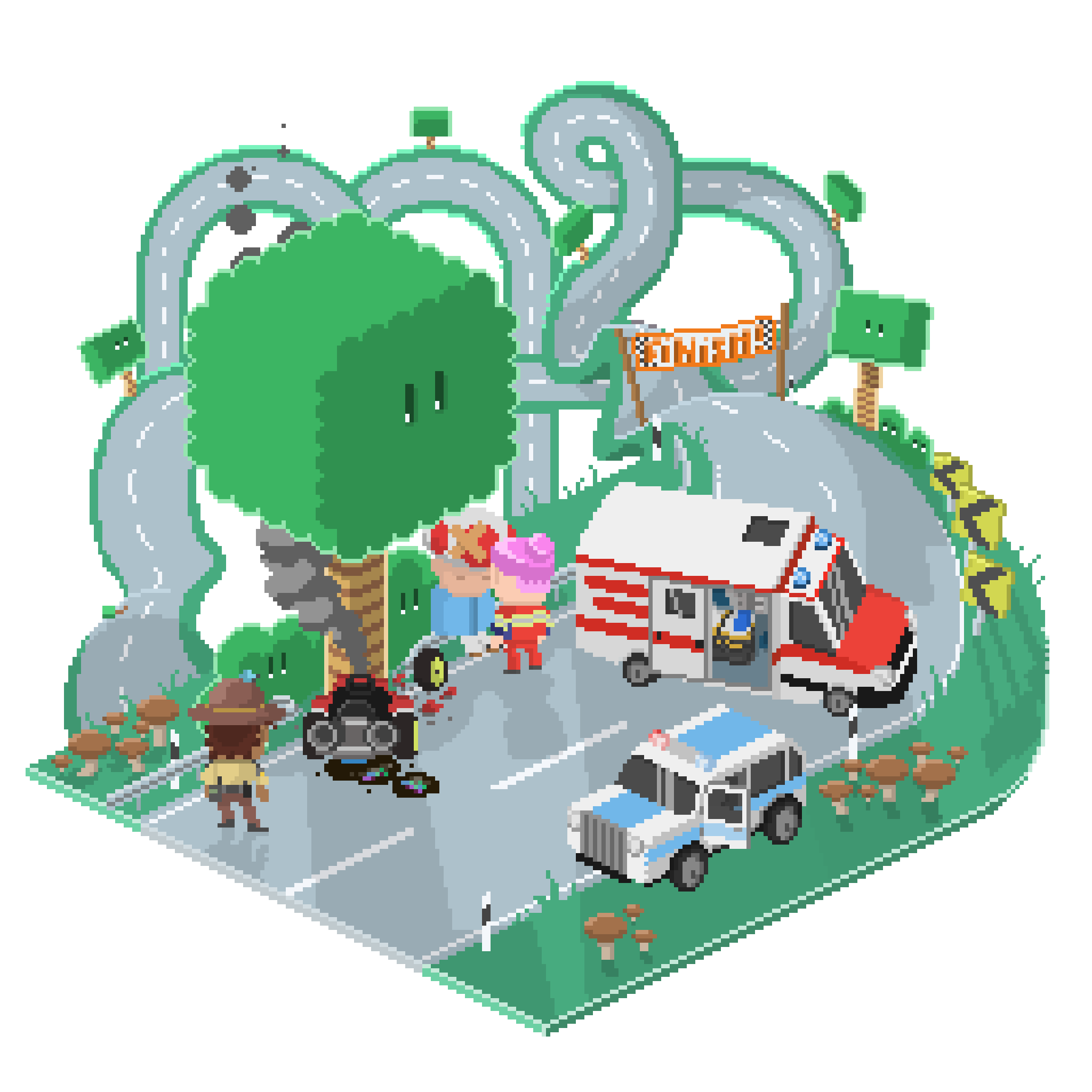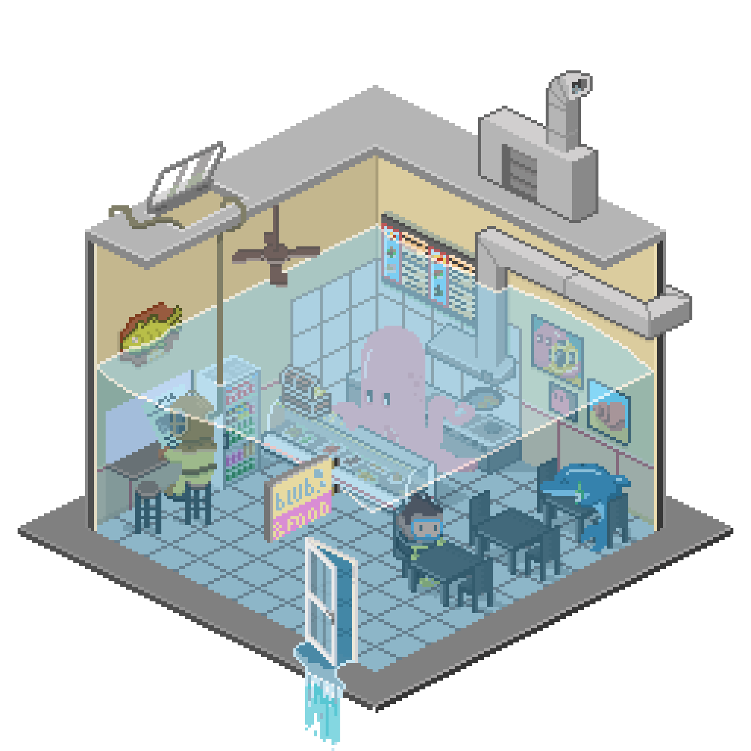 I illustrated and animated scenes in the style of early video games, which at first glance appear to be classic game sequences.